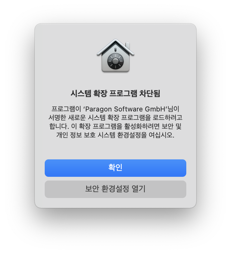 시스템 확장 프로그램 차단됨이라는