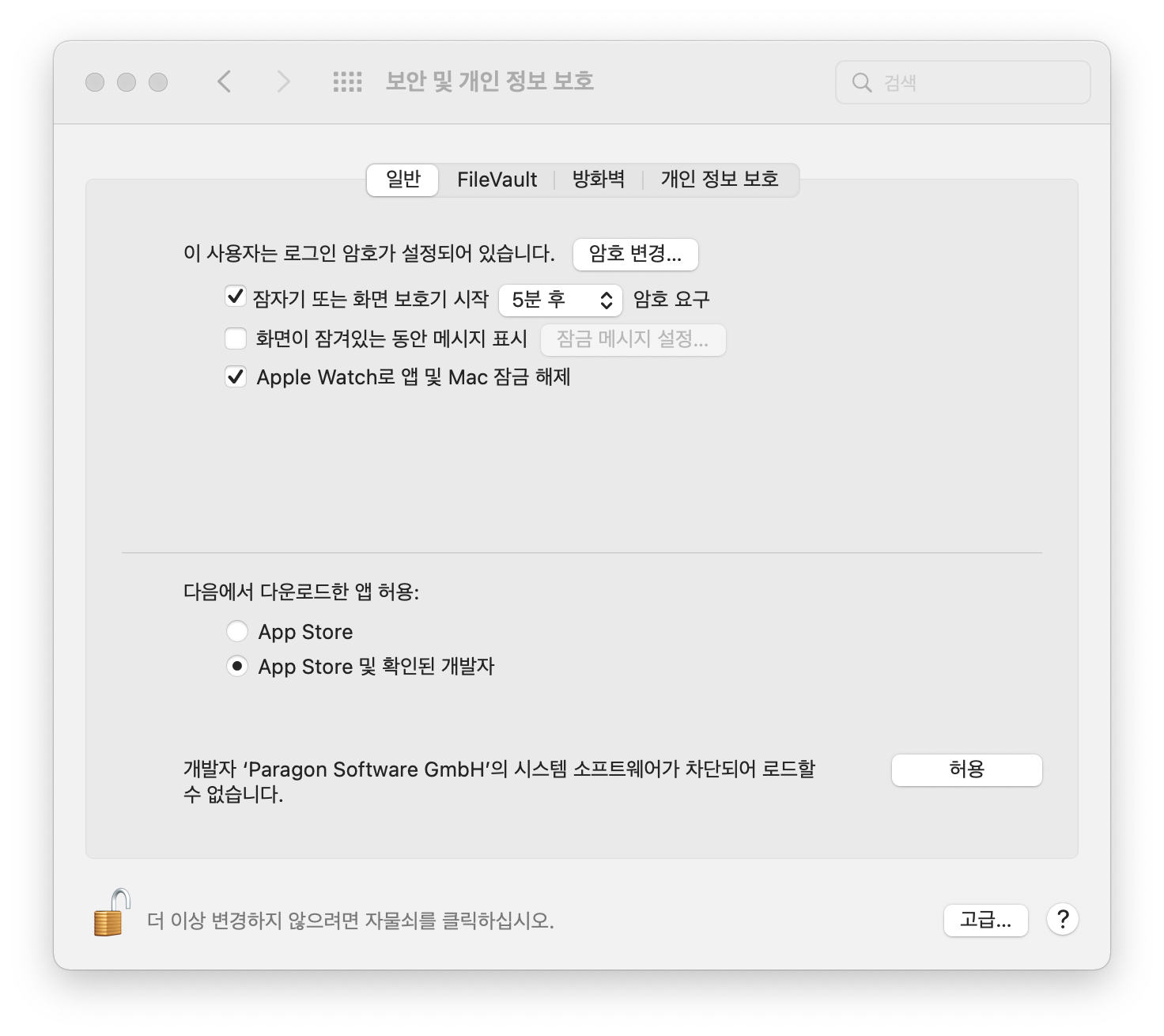 여기서 잠금 해제를 눌러서