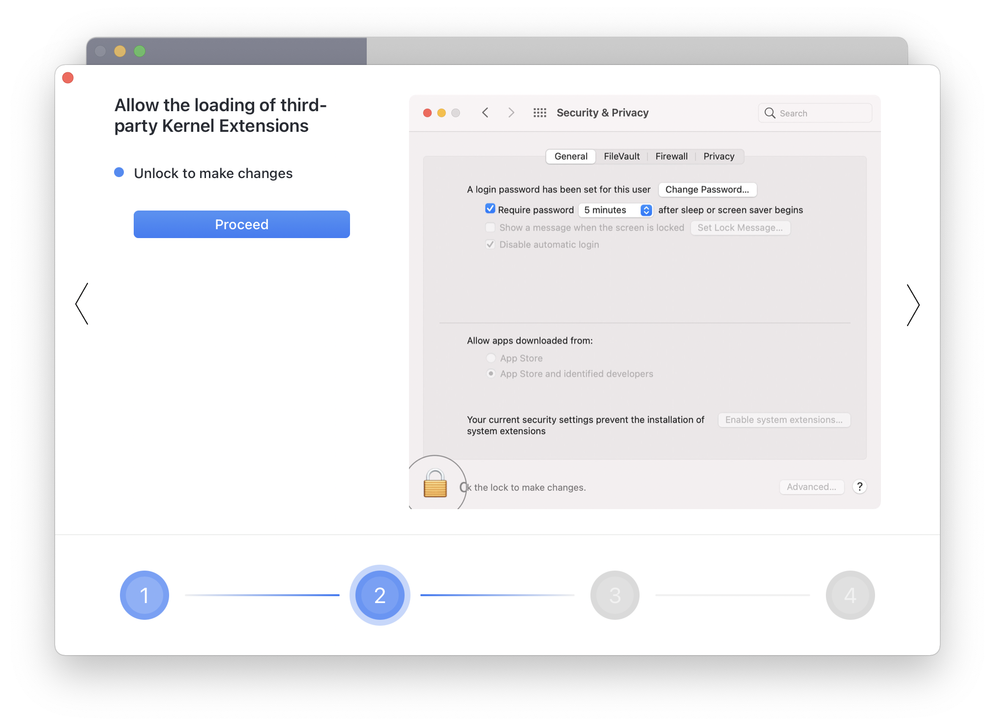 시스템 확장 프로그램을 활성화하려면 복구 환경에서 보안 설정을 수정해야 합니다.
